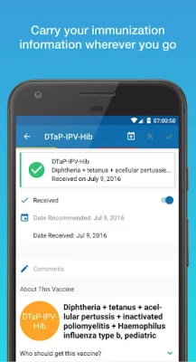 CANImmunize yana aiki a matsayin abokin tarayya mai mahimmanci a kula da lafiyar iyali ta hanyar tabbatar da tsarin rigakafi mai tsauri. Yana ba ka damar lura da duk wani allurar rigakafi—na yara, na manya, har ma da na balaguro—ga kai da kowane memba na iyalinka cikin sauƙi da tsari. Ba wai kawai lura ba, CANImmunize yana aiko maka da tunatarwa kai tsaye zuwa shafin farko na wayarka game da alluran da ke tafe, don haka ba za ku taɓa manta wani abu mai mahimmanci ba.