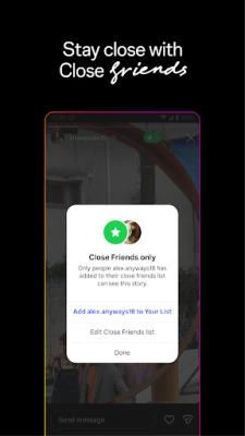 Fito da kwarewarka ta raba bayanai ta hanyoyi daban-daban. Yi amfani da Labarai da Saƙonni, waɗanda ke ɓacewa bayan sa'o'i 24, don ba da labarin abubuwan da suke faruwa a yanzu. Haɗu da abokanka na kusa a cikin tattaunawar rukuni don raba lokuta na gaskiya, ko kuma adana tunawa daga tafiye-tafiye da abubuwan da suka faru a baya a cikin Feed ɗinka. Idan kana son ƙirƙirar bidiyo masu ban sha'awa, shiga duniya ta Reels kuma juya rayuwarka zuwa fim tare da kiɗa, sitika, da masu tace hotuna na musamman da zasu sa post ɗinka ya yi fice.
