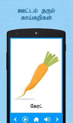 Amma ba haruffa kaɗai bane yara za su koya. Wannan manhaja babbar ma'ajiyar ilimi ce mai ɗauke da kalmomi sama da 300 da sauti daban-daban don zurfafa iliminsu. Za su zurfafa fahimtarsu game da dabbobi, launuka, siffofi, 'ya'yan itatuwa, kayan lambu, lambobi, kwanaki, sassan jikin mutum, tsarin sararin samaniya, watannin Tamil, da ma watannin Turanci. Kowane hoto an tsara shi da kyau don tabbatar da cewa yara za su iya gane kowace abu cikin sauƙi da kuma inganci. Kuma mafi mahimmanci, ba wai kawai gane abubuwa bane, har ma za su koyi ingantattun lafuzzan su don ci gaba da haɓaka ƙwarewarsu ta magana.