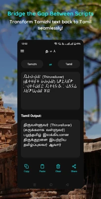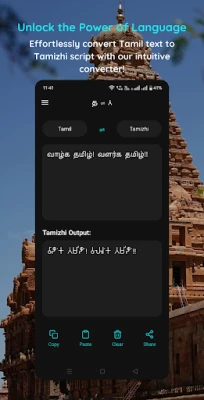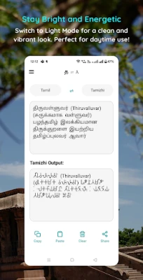 Baya ga ingantattun fasalulluka na sauyawa, Tamizhi Converter yana inganta ƙwarewar ka ta hanyoyi daban-daban. Zaka iya kwafa rubutun da aka sauya cikin sauƙi zuwa allon kwamfutarka ko raba shi kai tsaye a kan dandamali daban-daban da taɓawa ɗaya. Don jin daɗin gani, manhajar tana ba da yanayin haske da duhu, don ka zaɓi wanda ya fi dacewa da kai. Mafi mahimmanci, Tamizhi Converter ya haɗa da shafi na albarkatun koyo inda zaka iya nutsa cikin zurfin tarihi da mahimmancin rubutun Tamizhi, yana ba ka damar faɗaɗa ilimin ka game da wannan rubutun mai kayatarwa. An tsara Tamizhi Converter musamman don dalilai na ilimi da nazari, yana mai da shi babban kayan aiki ga duk masu sha'awar harsuna.
