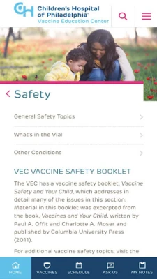 A yau, samun bayanai game da lafiya ya zama abu mai sauƙi, amma rarrabe bayanai masu inganci (waɗanda kimiyya ta tabbatar) daga marasa inganci (waɗanda ba su dogara ga kimiyya ba) na iya zama ƙalubale. Wannan gaskiya ne musamman game da alluran rigakafi. Domin magance wannan, Cibiyar Ilimi Kan Rigakafi ta Asibitin Yara na Philadelphia (VEC), ta ƙirƙiri "Vaccines on the Go: What You Should Know". Wannan manhaja an tsara ta ne don samar da ingantattun bayanai game da kimiyya, aminci, da mahimmancin alluran rigakafi ga iyaye masu aiki da kowa mai bukata, a duk inda suke da kuma duk lokacin da suke bukata.