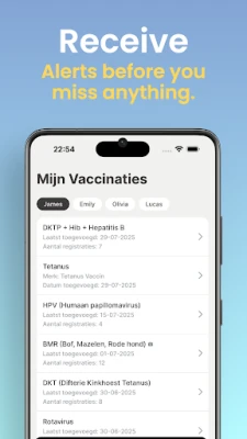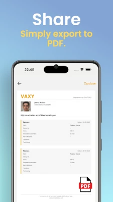 Vaxy yana ba da kayan aiki masu ƙarfi don gudanar da rigakafinku cikin sauƙi. Kuna iya yin rijistar allurai da hannu – cike sunan magani, adadin da aka ba, da kuma ranar da aka yi. Har ila yau, Vaxy yana ba ku damar kula da bayanan rigakafin kowane memba na iyali, daga yara ƙanana zuwa manya, yana samar da bayyani dalla-dalla. Don tabbatar da cewa kuna da shaidar kowane lokaci, kuna iya sanya hotuna ko takardun shaidar rigakafi kai tsaye a cikin app, kuma ku fitar da cikakken bayani a tsarin PDF don rabawa ko bugawa a duk lokacin da kuke buƙata.