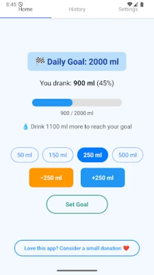 "Water Intake Tracker" zai taimaka maka ka kasance cikin koshin lafiya ta hanyar tabbatar da cewa kana shan isasshen ruwa. Yana sauƙaƙe maka adana da kula da yawan ruwan da kake sha a kullum. Gina halin shan ruwa mai kyau, cimma burin lafiyarka cikin sauki. A ciki akwai saita burin ruwa na yau da kullum da kuma tunatarwa masu amfani.